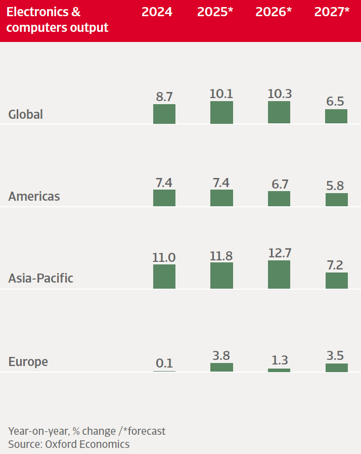 • We expect electronics/ICT production to grow by 10.3% in 2026 and by 6.5% in 2027 after a 10.2% in 2025